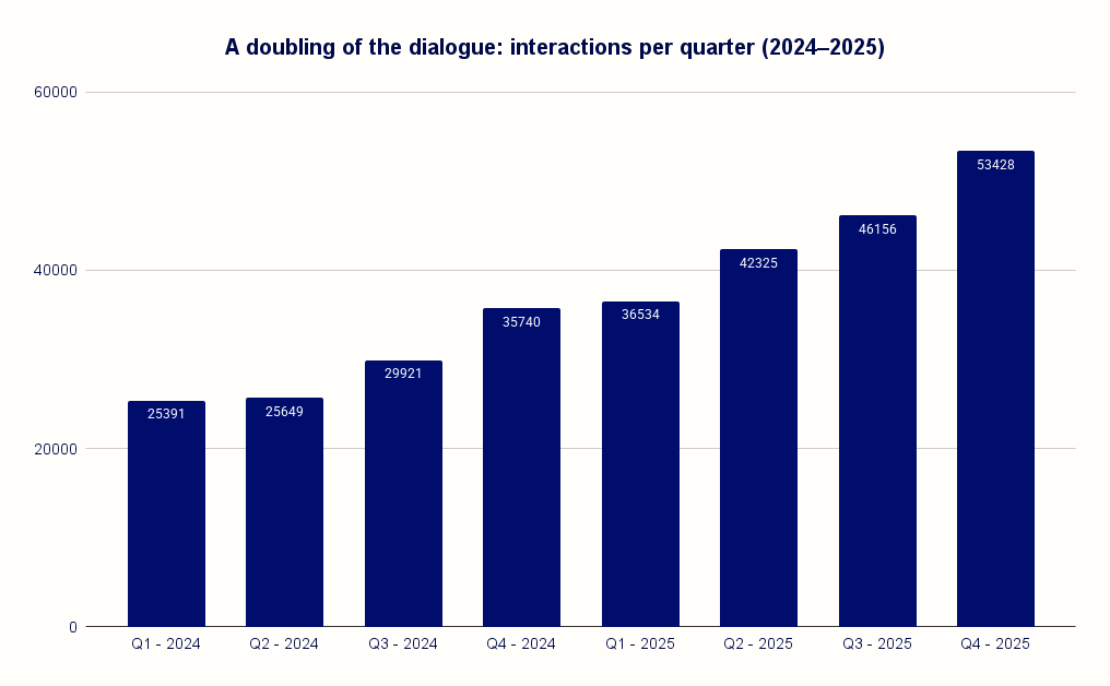 54,115 interactions per quarter: engagement that keeps growing